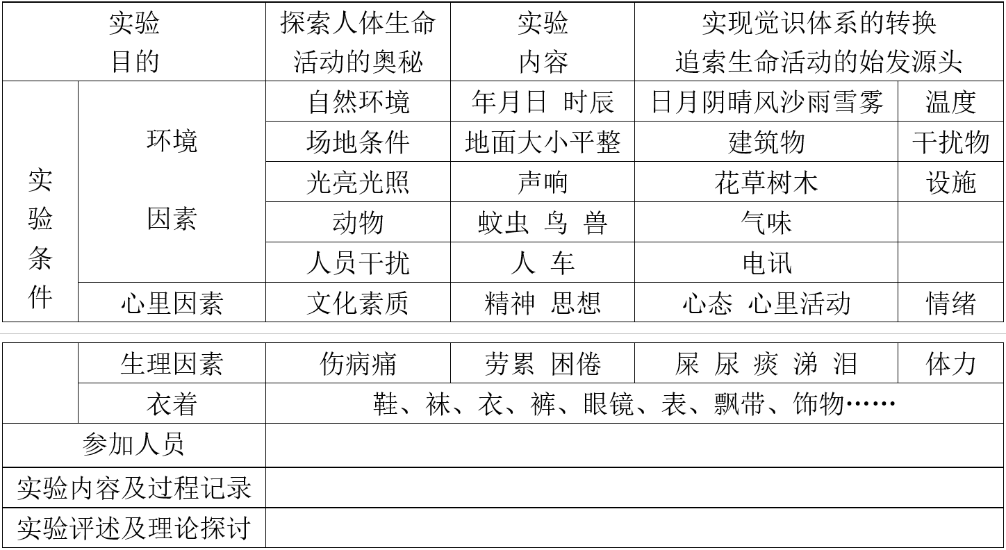 我們知道,人們的所有言行全都受控于人們的思想、情緒和意念。受思想、意念、情緒的支配、控制與指揮。然而,在這項(xiàng)實(shí)驗(yàn)之中,思想、意念和情緒恰恰就成為了一種干擾。為了能夠得到原始、純真的自然信息,就必須完全、徹底、干凈地剔除思想、意念和情緒的控制、指揮。要確保作為觀測(cè)者的“我”能夠完全地集中、耦合到那個(gè)被觀察的對(duì)象上。而不是被其它的信號(hào),諸如景物、聲響、情緒、思緒等等所吸引,所干擾。此外,來(lái)自身體內(nèi)、外的其它干擾還很多,在后面的表中有所羅列,需認(rèn)真、仔細(xì)地辨認(rèn)。通過(guò)認(rèn)真、細(xì)致的實(shí)際觀察,人們自然會(huì)有所收獲,有所成就。就其本質(zhì)而言,如何追尋到生命活動(dòng)的始發(fā)之源頭,唯一的正確途徑只能是改造自己的生命活動(dòng)狀態(tài),使之回歸到那個(gè)“使發(fā)之源”的狀態(tài)。所以實(shí)驗(yàn)本身其實(shí)是一個(gè)對(duì)生命活動(dòng)的自我改造過(guò)程,是對(duì)參與者自身生命活動(dòng)的一種主動(dòng)的自我改造。這種改造就展現(xiàn)為開(kāi)發(fā)和挖掘出一個(gè)全新的、與常規(guī)的五官之覺(jué)不同的感覺(jué)體系。常規(guī)的五官之覺(jué)不外乎眼、耳、鼻、舌、身,得到的是信息,由之所升華的是理性的認(rèn)識(shí)與智慧;這種全新的感覺(jué)體系所接收的則是“作用”,由之所升華的只是對(duì)“作用”所發(fā)生的判斷和分辨能力的提升。生命活動(dòng)的自我改造也只有在認(rèn)識(shí)這一客觀存在的同時(shí)得以成就。當(dāng)然,既然是“改造”,那也就意味著實(shí)驗(yàn)的長(zhǎng)期性和持久性。長(zhǎng)期認(rèn)真地這樣做下去,日積月累,就能成就自己對(duì)這一客觀存在的識(shí)辨,發(fā)現(xiàn)并認(rèn)識(shí)其中的規(guī)律性?;貧w到何時(shí)為止,其標(biāo)準(zhǔn)即回歸到“胎息”,即人在出生之前的狀態(tài)。在這種狀態(tài)之下,雖然有覺(jué),卻不發(fā)生理智的控制作用。唯有以生命活動(dòng)為特征的現(xiàn)象存在,無(wú)思、無(wú)念、無(wú)情、無(wú)智,此時(shí)的覺(jué)識(shí)中樞只有對(duì)“作用”與“信息”的純真記錄和反映。此時(shí)覺(jué)識(shí)本體所接收并發(fā)生分辨的,只是唯一自然的作用與信息,與社會(huì)因素?zé)o關(guān)。生命活動(dòng)的狀態(tài)由自然作用的規(guī)律性所唯一確定,因而也只唯一反映自然作用的規(guī)律性。