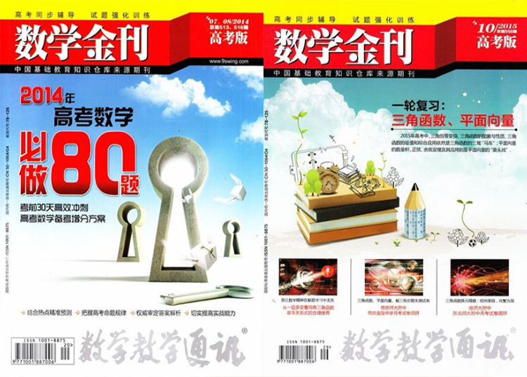 全年一共12期,月刊,單期64頁,彩色銅版紙。出版單位:數(shù)學(xué)金刊高考版