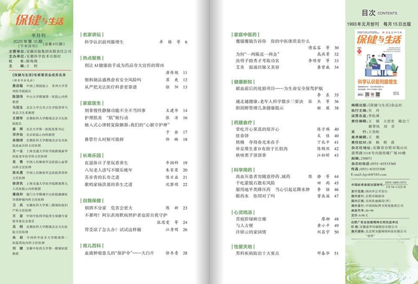 在信息爆炸的時代,健康謠言與偽科學(xué)層出不窮,《保健與生活》始終將內(nèi)容的科學(xué)性與權(quán)威性視為生命線。雜志背靠國內(nèi)外頂尖的醫(yī)學(xué)專家委員會,每一篇文章都經(jīng)過嚴(yán)格的同行評議與事實(shí)核查,從流行病學(xué)數(shù)據(jù)到臨床醫(yī)學(xué)證據(jù),從營養(yǎng)學(xué)基礎(chǔ)到中醫(yī)藥理論,均堅(jiān)持循證醫(yī)學(xué)原則,確保信息準(zhǔn)確無誤。