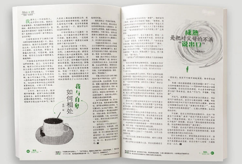 雜志的志向,遠(yuǎn)不止于提供一時(shí)的閱讀快感。它致力于“培養(yǎng)和影響新一代積極、健康、豁達(dá)、平靜、真實(shí)的成長和生活”。這一目標(biāo)決定了它的內(nèi)容基調(diào):既有直面現(xiàn)實(shí)的銳度,又不失撫慰人心的溫度。它倡導(dǎo)積極的生活態(tài)度,但并非廉價(jià)的正能量;它關(guān)注心理健康,強(qiáng)調(diào)情緒的真實(shí)表達(dá)與合理紓解;它推崇豁達(dá)的人生格局,鼓勵(lì)讀者在得失之間找到平衡;它追尋內(nèi)心的平靜,提供在信息洪流中安頓自我的方法;它堅(jiān)守真實(shí)的價(jià)值,反對(duì)表演式的生活與虛偽的社交。這五個(gè)關(guān)鍵詞——積極、健康、豁達(dá)、平靜、真實(shí)——如同五根堅(jiān)實(shí)的支柱,撐起了雜志獨(dú)特而完整的價(jià)值體系。