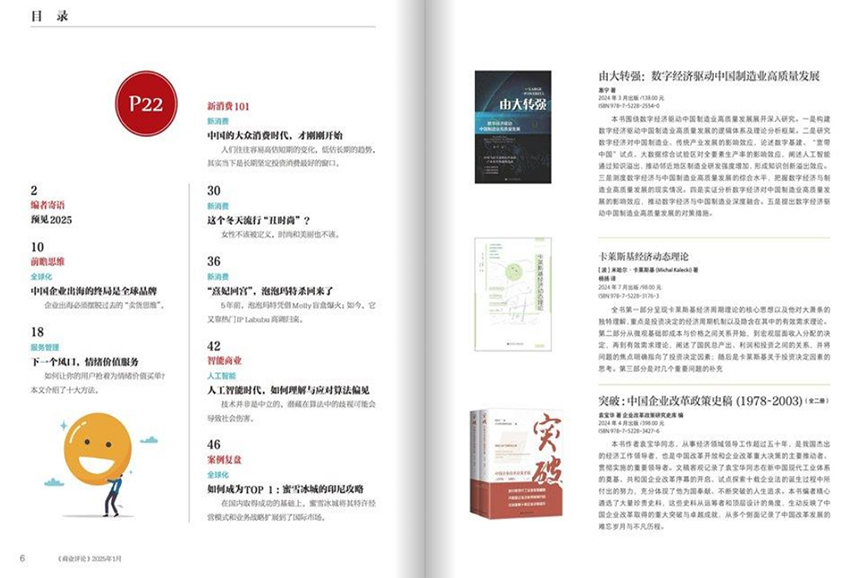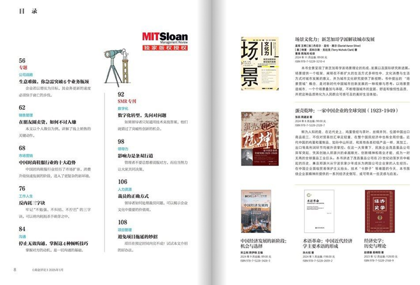 《商業(yè)評論》雜志自創(chuàng)刊以來,始終秉持“提供中國商業(yè)環(huán)境下有效的管理思想、方法和案例”的核心使命,致力于成為中國企業(yè)管理升級的推動者與智慧引擎。在經(jīng)濟全球化與本土化深度交融的時代背景下,雜志沒有簡單照搬西方管理理論,而是深入中國企業(yè)的實際運營場景,挖掘本土管理智慧,提煉可復(fù)制、可落地的管理解決方案,逐步發(fā)展為中國管理媒體領(lǐng)域的領(lǐng)導(dǎo)品牌,贏得了廣大企業(yè)管理者、學(xué)者及政策制定者的高度認可。 中國企業(yè)的成長之路充滿獨特挑戰(zhàn):市場環(huán)境快速變化、組織結(jié)構(gòu)復(fù)雜多元、人才戰(zhàn)略亟待升級、數(shù)字化轉(zhuǎn)型壓力陡增。面對這些現(xiàn)實問題,雜志堅持“問題導(dǎo)向、實踐為本”的內(nèi)容原則,聚焦戰(zhàn)略、組織、領(lǐng)導(dǎo)力、創(chuàng)新、運營、人力資源等核心管理領(lǐng)域,通過深度訪談、企業(yè)調(diào)研、案例分析和專家評述,為讀者呈現(xiàn)真實、鮮活、具有啟發(fā)性的管理內(nèi)容。每一篇文章背后,都是對管理本質(zhì)的深刻洞察,是對“如何讓企業(yè)更有效運轉(zhuǎn)”的持續(xù)探索。