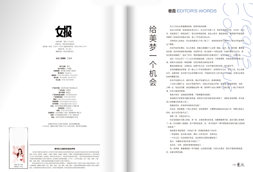 雜志的體裁豐富多樣,融合了人物專訪、情感故事、生活方式記錄、實(shí)用指南與社會(huì)觀察,既有深度,也不失溫度。它用平實(shí)而有力的語言,講述普通女性的不凡經(jīng)歷,讓每一位讀者都能在其中看到自己的影子,也看到前行的方向。