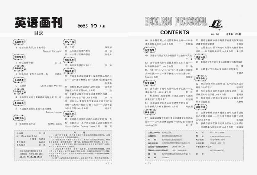 《興趣英語》在當(dāng)今全球化的時代,英語不僅是學(xué)校課程中的一門學(xué)科,更是一扇通向廣闊世界的窗口。如何讓小學(xué)生在輕松愉快的氛圍中愛上英語、掌握語言、理解文化,是每一位教育者和家長共同關(guān)心的課題。雜志正是在這樣的背景下應(yīng)運而生,成為一本專為小學(xué)生量身打造的課外英語閱讀雜志。它不僅是一本語言學(xué)習(xí)的輔助讀物,更是一座連接孩子與英語世界的橋梁,用趣味與智慧點燃孩子們學(xué)習(xí)英語的熱情。 雜志的作者團隊由經(jīng)驗豐富的小學(xué)英語教師和來自英語母語國家的外籍教師共同組成,這一獨特的組合確保了雜志內(nèi)容既符合中國小學(xué)生的認知水平和學(xué)習(xí)需求,又原汁原味地呈現(xiàn)英語語言的地道表達與文化內(nèi)涵。一線教師深諳孩子們的學(xué)習(xí)難點、興趣點和心理特點,能夠設(shè)計出循序漸進、寓教于樂的內(nèi)容;而外籍教師則帶來了純正的語言語感和鮮活的文化視角,使孩子們在閱讀中仿佛置身于真實的英語語境之中。這種“本土化”與“國際化”相結(jié)合的創(chuàng)作模式,讓雜志既接地氣,又具視野。