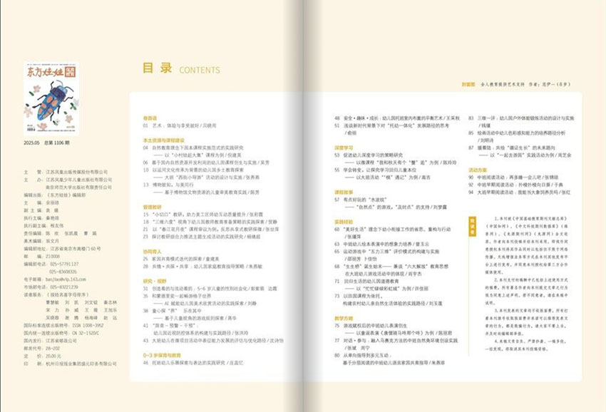 《東方娃娃保育與教育雜志》雜志秉承“扎根生活、陪伴成長”的核心理念,致力于傳播科學(xué)、前沿的早期教育思想與方法,是廣大家庭和幼教機構(gòu)信賴的育兒指南與專業(yè)資源。雜志內(nèi)容全面覆蓋兒童早期發(fā)展的關(guān)鍵領(lǐng)域,包括身體保育、營養(yǎng)健康、心理發(fā)展、行為認知、情感與社會性培養(yǎng)等。它不僅提供權(quán)威的兒童發(fā)展心理學(xué)知識,更注重理論與實踐的結(jié)合,通過大量真實生動的案例、互動游戲設(shè)計和家庭活動建議,為讀者提供具操作性的育兒支持。 作為連接家庭與幼兒園的橋梁,該雜志特別關(guān)注家園共育。它為家長解析孩子成長中的困惑與挑戰(zhàn),也為幼教工作者提供豐富的教學(xué)資源和課堂活動方案,促進教育理念的同步與協(xié)作。其內(nèi)容深入淺出,既具專業(yè)性又不失親和力,能有效滿足不同讀者的多元需求。