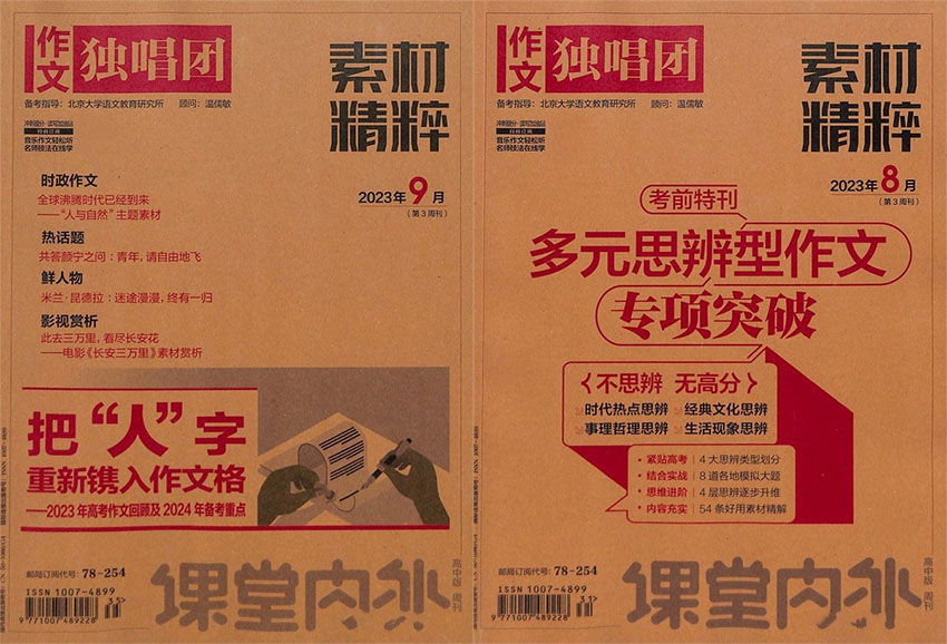 憑借專業(yè)的內(nèi)容策劃與實用的寫作指導(dǎo),《作文獨唱團》不僅成為學(xué)生提升作文成績的實用工具,更在潛移默化中培養(yǎng)其人文素養(yǎng)與社會洞察力。雜志發(fā)行覆蓋全國,以其“干貨全面、新意十足”的口碑深受師生認可,多篇文章被選為學(xué)校作文教學(xué)案例,持續(xù)為高中作文教育注入活力,助力無數(shù)讀者實現(xiàn)“筆下生花,夢想有聲”的寫作目標。