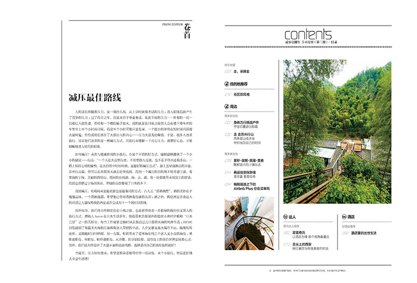 雜志內(nèi)容架構(gòu)緊扣讀者出行全流程需求,打造“周邊游”“酒店評測”“小眾目的地探訪”“本季新線路”“精明旅游攻略”等核心欄目。區(qū)別于傳統(tǒng)旅游媒體“重欣賞輕操作”的模式,其內(nèi)容以實地采訪為基礎(chǔ),通過樸實語言和真實圖片呈現(xiàn)目的地文化、美食、交通等實用信息,例如“我的導(dǎo)游”專欄邀請資深旅行者分享親身經(jīng)歷,提供可直接復(fù)制的行程規(guī)劃;“酒店”欄目則從硬件設(shè)施、服務(wù)細節(jié)到性價比進行多維評測,幫助讀者精準決策。這種“所見即所得”的內(nèi)容風格,使其成為讀者出行前的必備指南。
