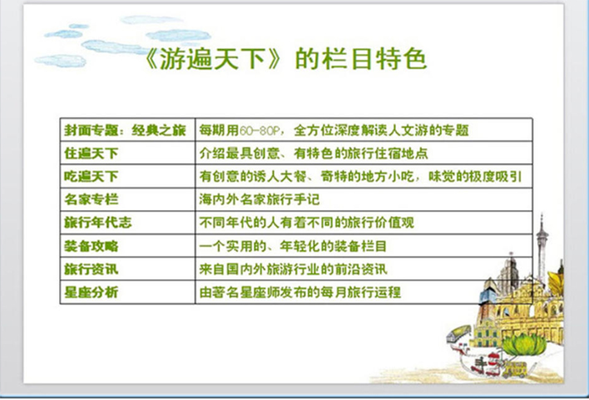 《游遍天下》的讀者以25-45歲、具有較高消費(fèi)能力的中產(chǎn)階級為主,涵蓋企業(yè)高管、文化從業(yè)者及自由職業(yè)者等群體。雜志通過高端選題策劃與精準(zhǔn)市場推廣,在旅游產(chǎn)業(yè)鏈中形成廣泛影響力,其內(nèi)容常被高校圖書館收藏,并成為上海、廣東等地旅游從業(yè)者的參考讀物。例如,2014年推出的“德國藝文志”專輯,以萊茵河畔的浪漫主義、法蘭克福的建筑美學(xué)等主題,為讀者提供深度文化旅行指南,引發(fā)市場熱烈反響。