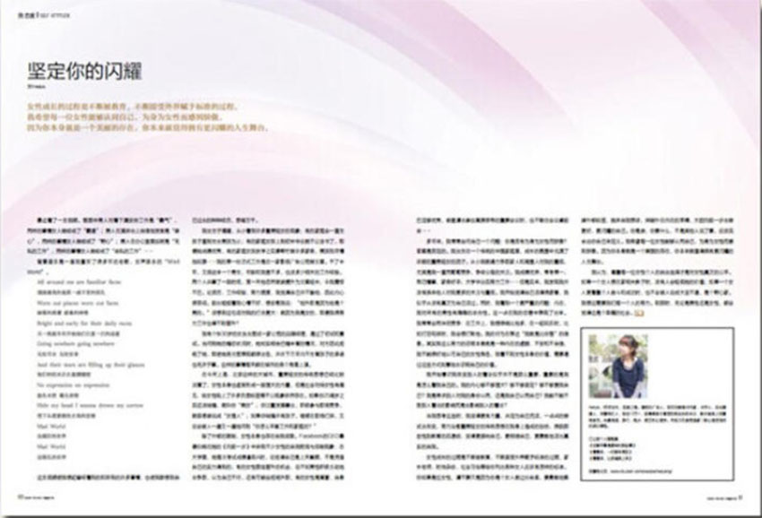 雜志精準定位25-35歲都市白領(lǐng)女性,聚焦其職業(yè)發(fā)展與生活品質(zhì)雙重需求。內(nèi)容架構(gòu)清晰多元,既有直擊職場痛點的“職場資訊”“職場情感+”等欄目,提供行業(yè)動態(tài)、領(lǐng)導力培養(yǎng)及工作生活平衡方案;也有彰顯女性力量的“封面人物”與“她出鏡”,通過記錄杰出職業(yè)女性的奮斗故事,傳遞獨立自信的價值觀。此外,“美飛揚”“貪食紀”“在遠方”等欄目則覆蓋時尚、美食、旅行等生活場景,實現(xiàn)專業(yè)與生活的無縫銜接。