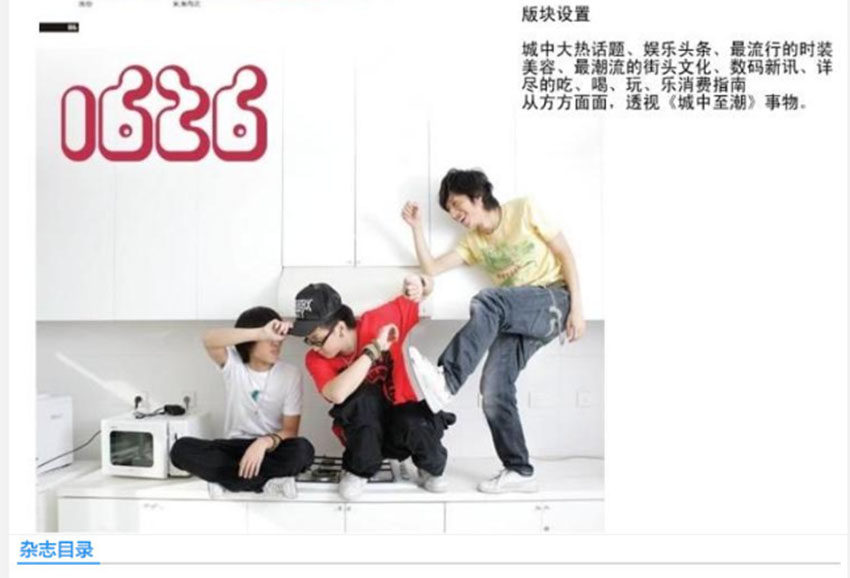《城中至潮1626雜志》是中國(guó)第一份原創(chuàng)潮流讀物,創(chuàng)刊于2004年,由經(jīng)濟(jì)日?qǐng)?bào)社主管,以“創(chuàng)意、潮流、玩樂、態(tài)度”為核心品牌主張,成為一代人的潮流文化記憶符號(hào)。雜志名稱“1626”取義16歲至26歲的年輕心態(tài),精準(zhǔn)定位潮流領(lǐng)導(dǎo)者與追隨者群體,倡導(dǎo)個(gè)性化消費(fèi)與年輕態(tài)生活觀。 作為本土潮流文化的開拓者,雜志內(nèi)容融合國(guó)內(nèi)外前沿資訊,以極具視覺沖擊力的設(shè)計(jì)編排,覆蓋服飾流行、設(shè)計(jì)創(chuàng)意、街頭文化、數(shù)碼影像、游戲電玩、影音娛樂六大核心領(lǐng)域。其創(chuàng)新之處在于采用“一城一版”策略,先后推出北京、上海、廣州、成都四個(gè)城市版本,分別覆蓋華北、華東、華南、西南地區(qū),根據(jù)不同地域的文化特質(zhì)與消費(fèi)習(xí)慣定制內(nèi)容,讓潮流資訊更貼近本地青年生活。
