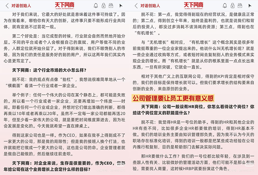 雜志內容涵蓋多個方面,包括電商平臺的最新動態(tài)、市場趨勢、技術革新、企業(yè)案例、行業(yè)訪談、投資分析以及創(chuàng)業(yè)指導等。無論是大企業(yè)還是中小型創(chuàng)業(yè)公司,《天下網商》都能為其提供寶貴的經驗和實用的建議。雜志不僅注重理論與實踐的結合,還通過深入研究和分析,為讀者呈現最具前瞻性的商業(yè)理念以及可操作的戰(zhàn)略規(guī)劃。