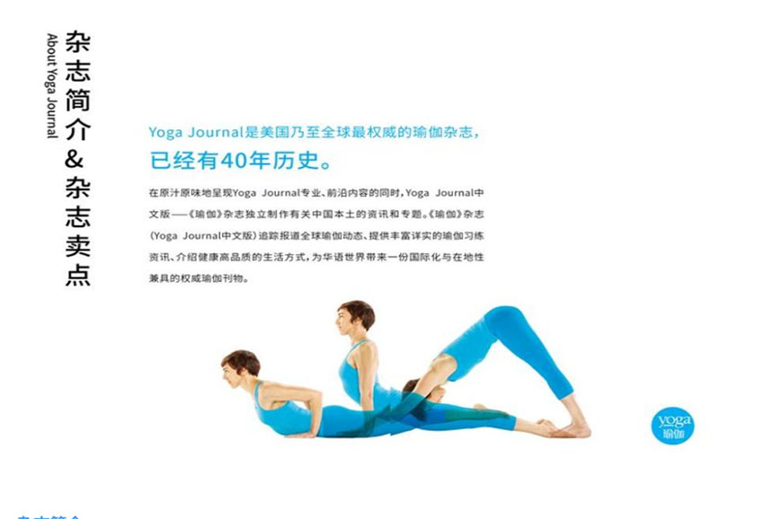 作為全球最權(quán)威的瑜伽媒體之一,《瑜伽雜志》(Yoga Journal中文版)自2006年創(chuàng)刊于美國(guó)洛杉磯以來(lái),已發(fā)展成為覆蓋28個(gè)國(guó)家、擁有12種語(yǔ)言版本的國(guó)際化刊物。其英文版月均讀者超400萬(wàn),官網(wǎng)月訪問(wèn)量逾百萬(wàn)人次,被譽(yù)為“瑜伽愛(ài)好者的圣經(jīng)”。2007年,這本擁有40年歷史的雜志正式登陸中國(guó),由廣州日?qǐng)?bào)報(bào)業(yè)集團(tuán)主管、大東方雜志社出版,成為國(guó)內(nèi)瑜伽教師與愛(ài)好者群體的核心讀物。