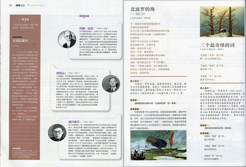 除了應(yīng)試指導(dǎo),雜志更注重考生閱讀素養(yǎng)的長(zhǎng)期培育?!懊医?jīng)典悅讀”欄目精選魯迅、沈從文、史鐵生等文學(xué)名家的經(jīng)典篇目,輔以賞析評(píng)論,引導(dǎo)考生感受文字之美,提升文學(xué)鑒賞能力;“時(shí)文熱點(diǎn)聚焦”則緊扣社會(huì)熱點(diǎn),選取《人民日?qǐng)?bào)》《光明日?qǐng)?bào)》等權(quán)威媒體的評(píng)論文章、深度報(bào)道,幫助考生拓寬視野,積累論述類文本閱讀素材,同時(shí)培養(yǎng)辯證思維能力。此外,“古詩文積累與賞析”板塊通過“古詩文原文+白話翻譯+名句解讀+文化常識(shí)”的形式,助力考生攻克古詩文閱讀難點(diǎn),夯實(shí)傳統(tǒng)文化基礎(chǔ)。