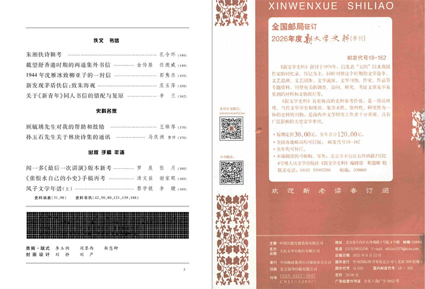 歷經(jīng)四十余載,《新文學(xué)史料》已不僅是一本雜志,更是一個(gè)開(kāi)放的學(xué)術(shù)平臺(tái)和一個(gè)巨大的史料寶庫(kù)。它忠實(shí)地記錄著文學(xué)歷史的細(xì)節(jié)與溫度,連接著文學(xué)的過(guò)去與未來(lái),是研究者、文學(xué)愛(ài)好者及高等院校師生深入了解中國(guó)新文學(xué)歷史不可或缺的權(quán)威讀物,在中國(guó)學(xué)術(shù)期刊界占據(jù)著獨(dú)特而重要的地位。