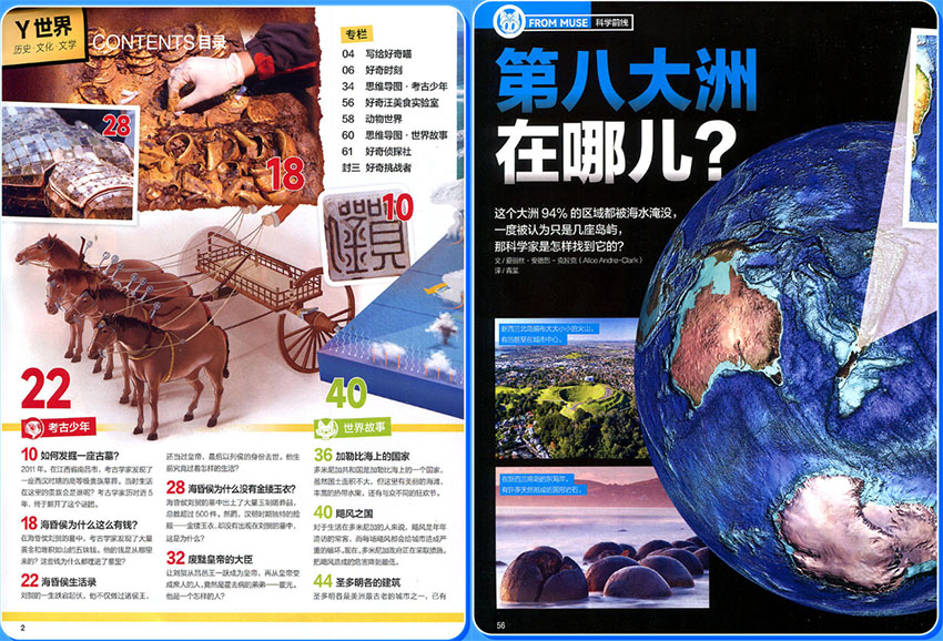 《好奇號(hào)》的內(nèi)容精選自Cricket Media旗下五大王牌刊物——Muse(科學(xué))、Faces(世界文化)、Dig(考古)、ASK(兒童科學(xué))、Cricket(文學(xué)),涵蓋科學(xué)、技術(shù)、自然、歷史、文化、文學(xué)六大領(lǐng)域。每期128頁(yè)超大容量,包含“X星球”(科學(xué)探索)與“Y世界”(人文歷史)兩冊(cè)主刊,以及32頁(yè)中英雙語(yǔ)兒童文學(xué)讀物。其內(nèi)容團(tuán)隊(duì)由科學(xué)家、歷史學(xué)家、兒童文學(xué)作家組成,確保知識(shí)權(quán)威性與趣味性并存,曾獲美國(guó)父母選擇獎(jiǎng)金獎(jiǎng)、全美雜志大獎(jiǎng)等14項(xiàng)國(guó)際大獎(jiǎng)。