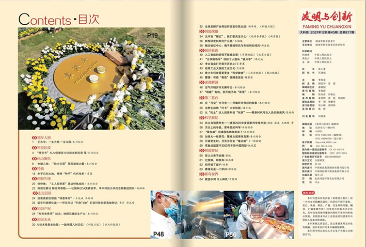 《發(fā)明與創(chuàng)新綜合版》主要欄目:資訊、聚焦、論壇、謀略、先鋒、產(chǎn)權(quán)、成果等。