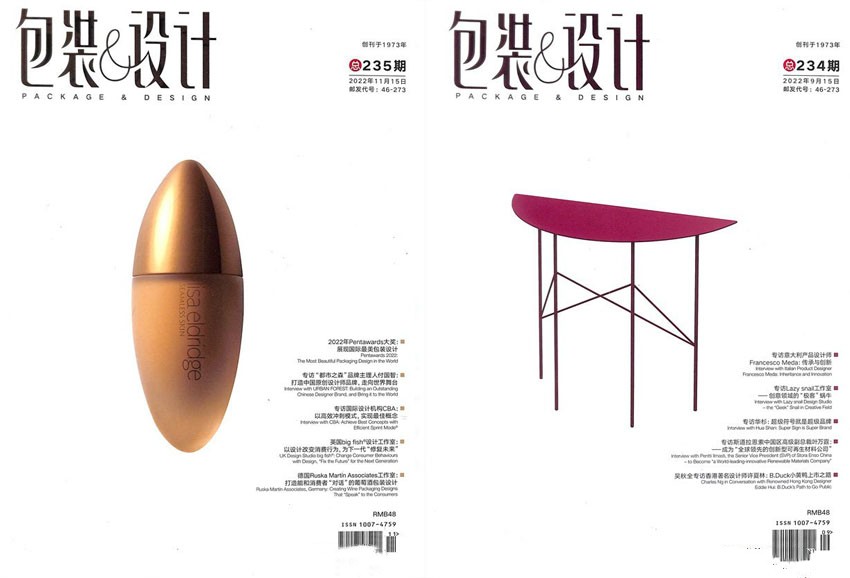 《包裝&設(shè)計》(雙月刊)經(jīng)過多年的不懈努力,流行度高,大眾辨識度廣,創(chuàng)刊于1973年,開拓了視野,帶給讀者富有生活特色的內(nèi)容。一本具有多年歷史、在全國設(shè)計界和設(shè)計院校中極具影響力的專業(yè)雜志,多年來為中國包裝和設(shè)計事業(yè)的發(fā)展以及中外設(shè)計師之間的交流不遺余力。
