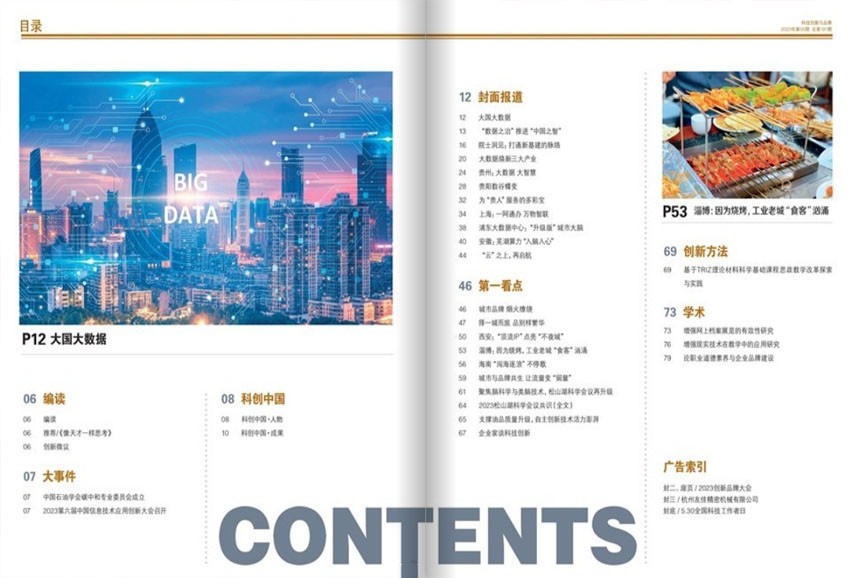 《科技創(chuàng)新與品牌》主要欄目:院士天地、封面報(bào)道、科協(xié)動(dòng)態(tài)、第一看點(diǎn)、創(chuàng)新成果、人物志等。