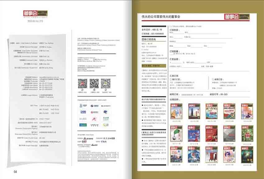 《董事會》雜志以其高水準的學術(shù)研究、專業(yè)性強的管理咨詢和豐富的管理經(jīng)驗,被譽為中國管理界的一張重要的窗口,是企業(yè)高層管理者、董事會成員和投資者了解企業(yè)管理狀況和趨勢變化的重要媒體。該雜志主要目的是讓讀者獲得最及時、最全面的企業(yè)管理信息和國際管理理念的傳遞,促成企業(yè)在管理方面更具創(chuàng)新性、更加靈活和更加務(wù)實。特別是鼓勵和推動中國企業(yè)實現(xiàn)轉(zhuǎn)型升級,促進全球化的競爭和國際化的合作。