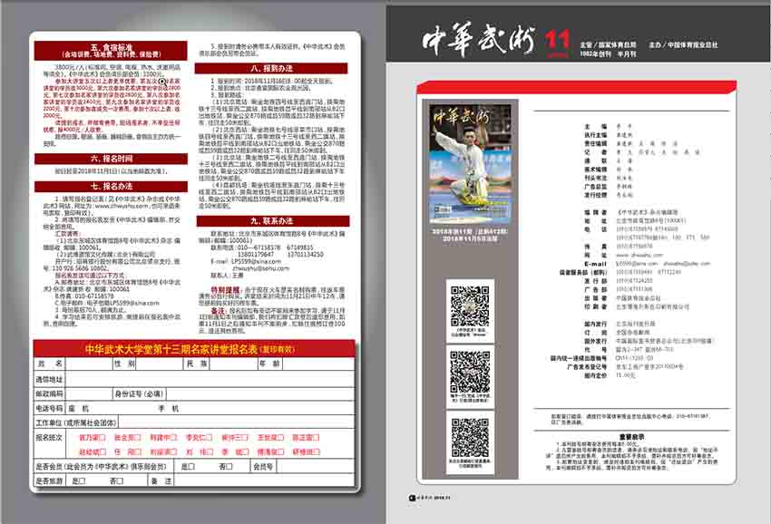 《中華武術(shù)》雜志秉承“專業(yè)、嚴(yán)謹(jǐn)、權(quán)威、活力”的理念,不僅記錄了中華武術(shù)傳承和歷史文化,也及時(shí)互動(dòng)反映武術(shù)最新的進(jìn)展,為中國武術(shù)愛好者提供專業(yè)、全面、深入的中華武術(shù)知識(shí)和文化信息。同時(shí),該雜志也為中華武術(shù)文化的傳播、交流和發(fā)揚(yáng)做出了積極努力?!吨腥A武術(shù)》雜志定期報(bào)道全國和國際各類武術(shù)比賽,包括國際太極拳友誼錦標(biāo)賽等盛會(huì),為武術(shù)愛好者們呈現(xiàn)精彩的武林盛事,幫助讀者更好地了解和升華中華武術(shù)文化。