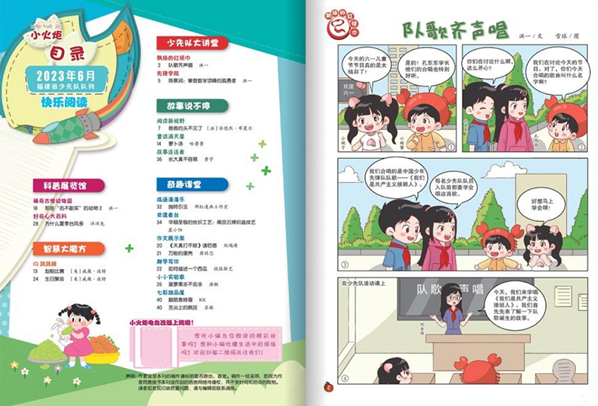 小火炬雜志是一個注重于孩子們的文學(xué)閱讀和成長的雜志。該雜志的作品包括兒童文學(xué)作品、童話、寓言、詩歌、散文、小說、戲劇、繪本等等,包括中國古代經(jīng)典和現(xiàn)代優(yōu)秀的文學(xué)作品。它的圖像更加國際化,通過獨特的設(shè)計,創(chuàng)造了一個充滿色彩、生動形象的視覺世界,滿足了孩子們的好奇心和求知欲。