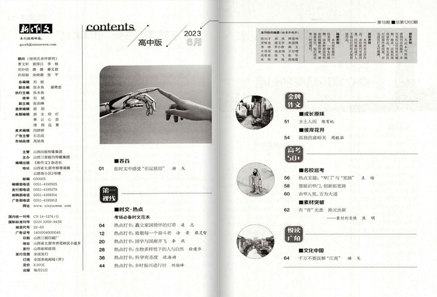 新作文雜志是一份以寫作為核心的教育雜志,其主要目標(biāo)是激勵(lì)和幫助讀者提高他們的寫作能力和寫作素質(zhì)。該雜志致力于為讀者提供優(yōu)秀的作文范文、寫作技巧和實(shí)用的寫作技巧,以提高他們的寫作能力和創(chuàng)造力。該雜志不僅面向?qū)W生,還面向所有熱愛(ài)寫作的讀者,包括教師和成年寫作愛(ài)好者。無(wú)論是初學(xué)者還是專業(yè)人士,該雜志都能為他們提供有價(jià)值的寫作信息和技巧。