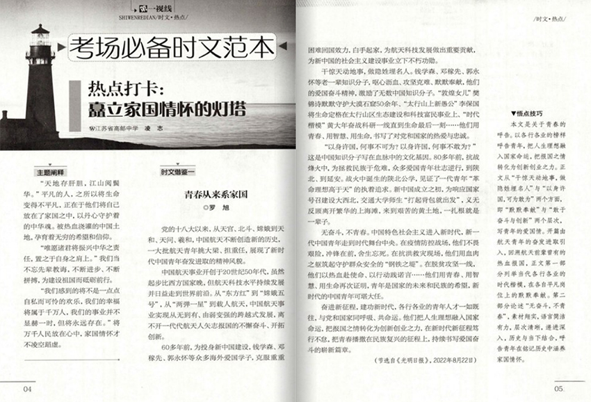 該雜志主要分為三大部分:作文范文,寫作技巧和作文比賽。作文范文部分提供各種值得借鑒的優(yōu)秀作文,可以幫助讀者了解不同類型、不同難度、不同風(fēng)格的好作文,激發(fā)他們的創(chuàng)作靈感和寫作興趣。寫作技巧部分包括寫作理論、寫作方法和實(shí)踐技巧,可以幫助讀者更好地掌握寫作技巧和應(yīng)對(duì)不同類型的寫作需求。作文比賽部分則提供各種主題的作文比賽,激發(fā)讀者的寫作熱情和創(chuàng)造力,以促進(jìn)其良好的寫作習(xí)慣和能力。
