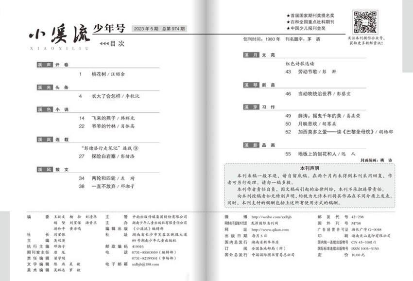 《小溪流》(月刊)經過多年的不懈努力,流行度高,大眾辨識度廣,創(chuàng)刊于1980年,開拓了視野,帶給讀者富有生活特色的內容。《小溪流》有夢幻的童話與新奇冒險,也有貼近時代的學生作文。貼近時代,關注校園,可讀性很強。扶持了一大批兒童文學作家和少年作家,深受讀者、老師和家長的喜愛。