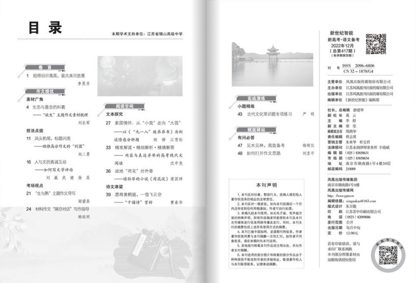 全年一共12期,月刊,單期64頁,彩色銅版紙。出版單位:江蘇教育出版社有限公司