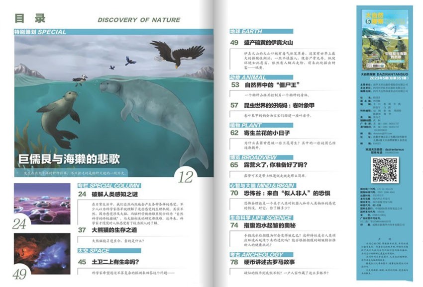 雜志深入淺出、娓娓道來地為讀者提供最新的科普知識(shí),呈現(xiàn)自然界最美好、最神秘的一面,引領(lǐng)讀者向大自然敞開心扉,向讀者傳達(dá)大自然的奧秘和科學(xué)知識(shí),深度探索自然中的規(guī)律和秘密,提升我們的文化素養(yǎng)和思維深度,讓人們更好地了解和探索自然界,增強(qiáng)人們對(duì)自然生態(tài)環(huán)境的保護(hù)意識(shí)。
