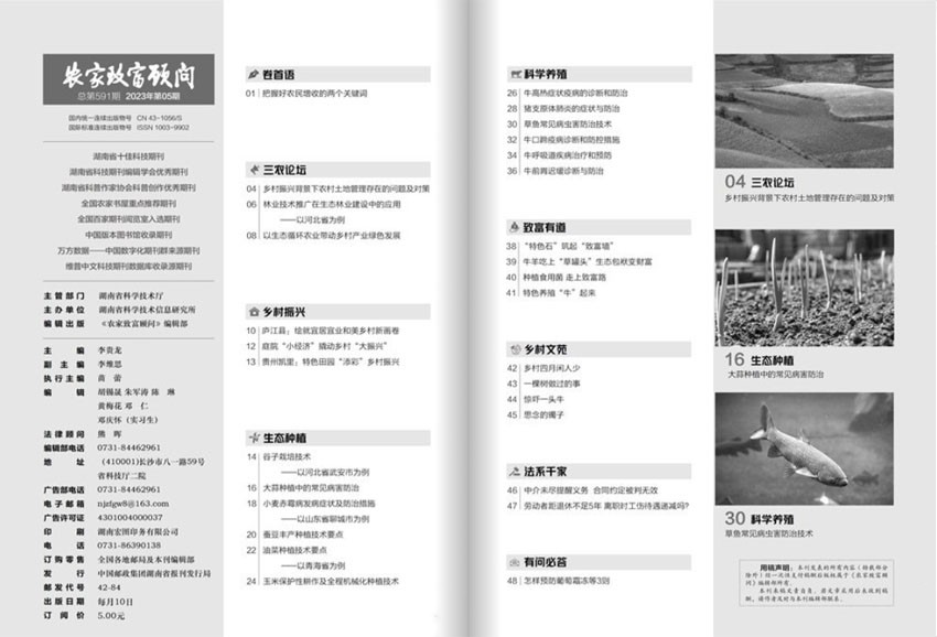 《農(nóng)家致富顧問》(月刊)經(jīng)過多年的不懈努力,流行度高,大眾辨識度廣,創(chuàng)刊于1985年,開拓了視野,帶給讀者富有生活特色的內(nèi)容。湖南一級刊物,扶助農(nóng)民致富,適讀人群:主要是農(nóng)民、種養(yǎng)加工戶、農(nóng)業(yè)創(chuàng)業(yè)者、以及基層科技工作人員和鄉(xiāng)村干部等等讀者。