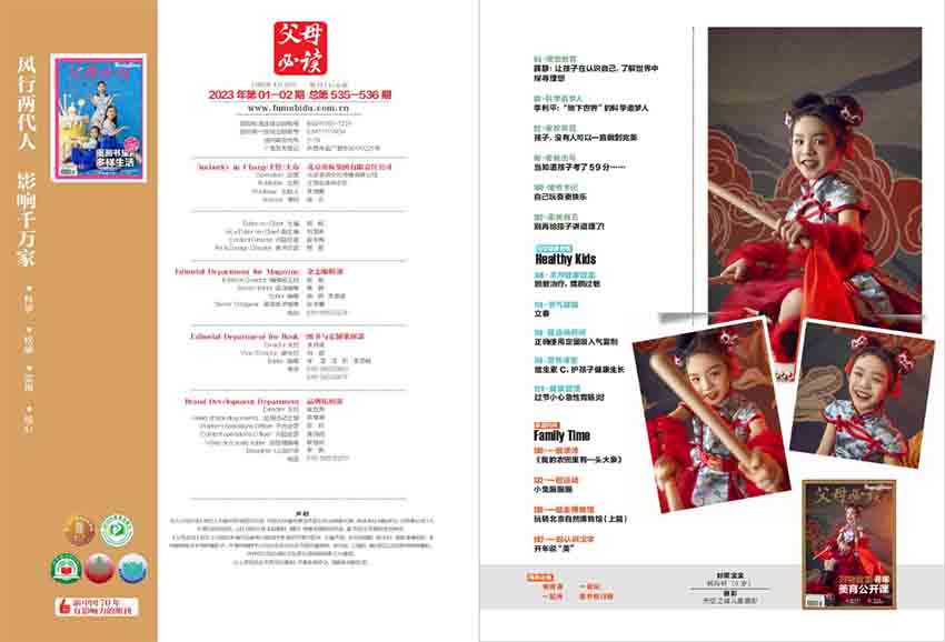 《父母必讀》是一本致力于為中國家庭提供兒童健康成長和親子教育知識的刊物,由中國少年兒童出版社主管,推動者文化傳媒有限公司編輯出版。《父母必讀》雜志的創(chuàng)刊宗旨在于通過傳播先進的親子教育理念和實踐經(jīng)驗,推動中國家庭教育改革,促進中國家庭健康成長。雜志經(jīng)常舉辦一些親子活動,例如親子互動游戲、親子體驗活動等,這些活動有助于家長和孩子之間的交流互動,增強了親子感情,也為雜志的內(nèi)容提供了實際的應(yīng)用場景。
