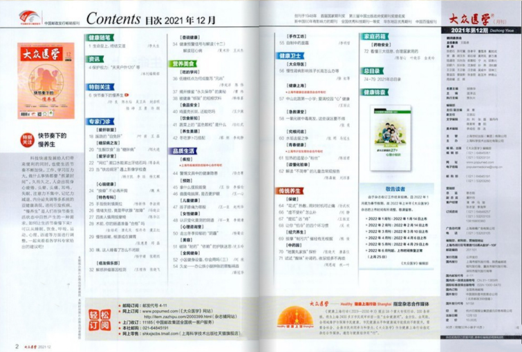 《大眾醫(yī)學(xué)》(月刊)經(jīng)過多年的不懈努力,流行度高,大眾辨識度廣,創(chuàng)刊于1948年,開拓了視野,帶給讀者富有生活特色的內(nèi)容。為東方中年人士提供實(shí)用保健方略,引領(lǐng)他們走向健康、遠(yuǎn)離疾病、享受快樂等等。