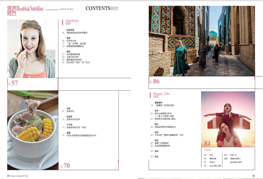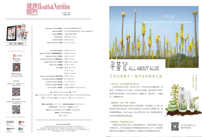 《健康與營(yíng)養(yǎng)》雜志作為品質(zhì)生活新標(biāo)尺,是國(guó)內(nèi)及時(shí)本面向“新中間階層”提供多方位營(yíng)養(yǎng)指導(dǎo)與健康資訊的時(shí)尚生活雜志。及時(shí)個(gè)以提升健康素養(yǎng)為己任,并與衛(wèi)生系統(tǒng)機(jī)構(gòu)中國(guó)疾病預(yù)防控制中心聯(lián)合開(kāi)設(shè)專題欄目,面向城市精英普及營(yíng)養(yǎng)科學(xué)的雜志。 《健康與營(yíng)養(yǎng)》雜志同時(shí)也是一個(gè)獲得中國(guó)科學(xué)技術(shù)協(xié)會(huì)和國(guó)務(wù)院食品安全辦公室頒發(fā)“2012年全國(guó)食品安全科普知識(shí)競(jìng)賽組織獎(jiǎng)”的平面媒體。