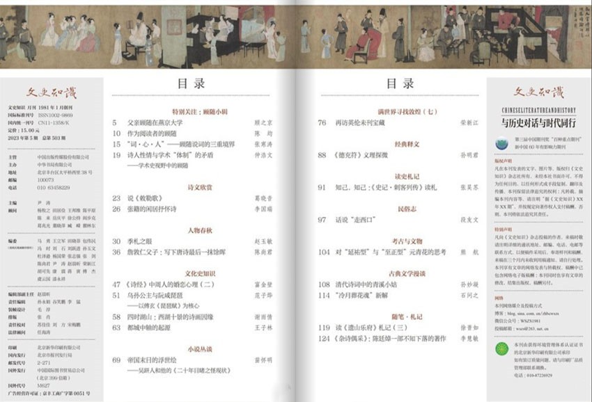 《文史知識(shí)》主要欄目:文史百題、詩(shī)文欣賞、文物與考古、古代科技漫話、文化史知識(shí)、民俗志、人物春秋。