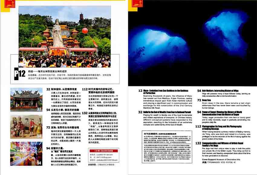 《文明》以傳承中華文明、展示世界文化為己任,用中國人的視角關(guān)注精彩人文世界。作為一本擁有自主知識產(chǎn)權(quán)和國際一流水準(zhǔn)的綜合性創(chuàng)新視覺人文雜志,《文明》志在打造中國第一原創(chuàng)視覺人文雜志?!段拿鳌稢ITYTODAY是國內(nèi)第一本高品位城市文化生活雜志,他探討城市話題關(guān)注城市人文、了解傳統(tǒng)文化、引領(lǐng)現(xiàn)代生活!他以豐富精彩的圖書、內(nèi)涵深韻的文字為您打造一本頂級城市文化???!