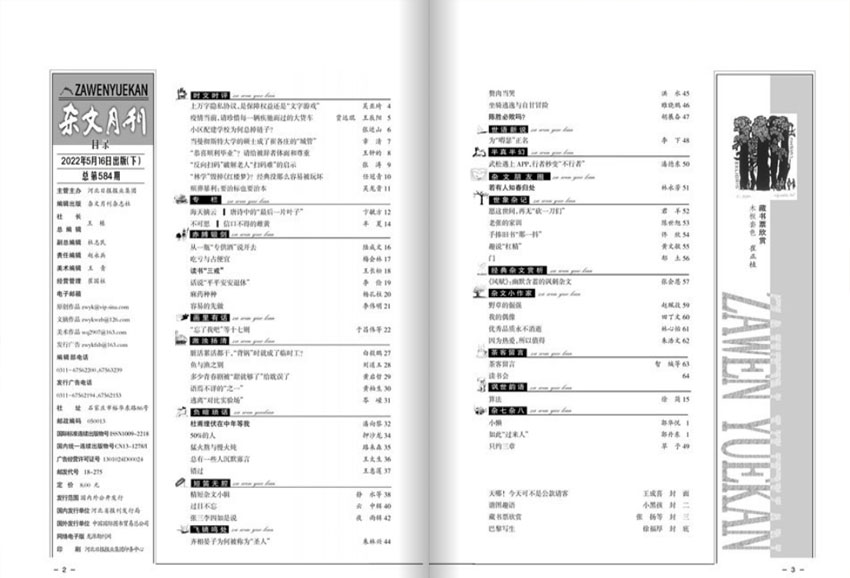 《雜文月刊》主要欄目:卷首縱筆、赤膊鍛劍、畫里有話、飛鏑鳴處、白說(shuō)也說(shuō)、原色空間等。