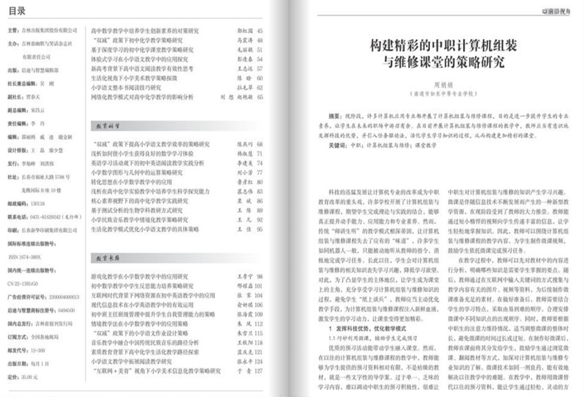 《啟迪與智慧》主要欄目:本刊視野、心理健康、能力培養(yǎng)、課題研究、閱讀與寫作、外語教學(xué)、數(shù)理化園地、政史地、教育藝術(shù)、教學(xué)智慧、學(xué)習(xí)策略、課堂感悟、管理技巧。