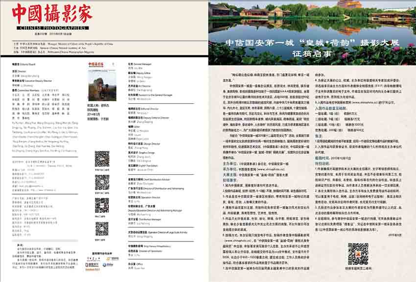 《中國攝影家》雜志作為中國攝影領(lǐng)域中的重要刊物之一,該雜志旨在展現(xiàn)攝影藝術(shù)創(chuàng)作與科技研究的最新成果,發(fā)掘和推廣攝影藝術(shù)人才,探索攝影的未來發(fā)展方向,為廣大攝影師和攝影愛好者提供優(yōu)秀的攝影作品、專業(yè)的攝影知識和前沿的攝影技術(shù)。中國攝影家主要欄目:中國攝影家、影像中國、藝影心得、作品賞析、異域經(jīng)典、器材論壇、數(shù)碼方陣、賽場風(fēng)云等。